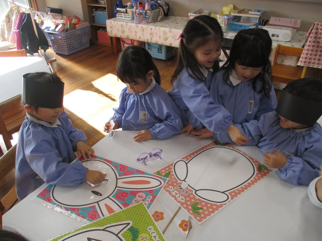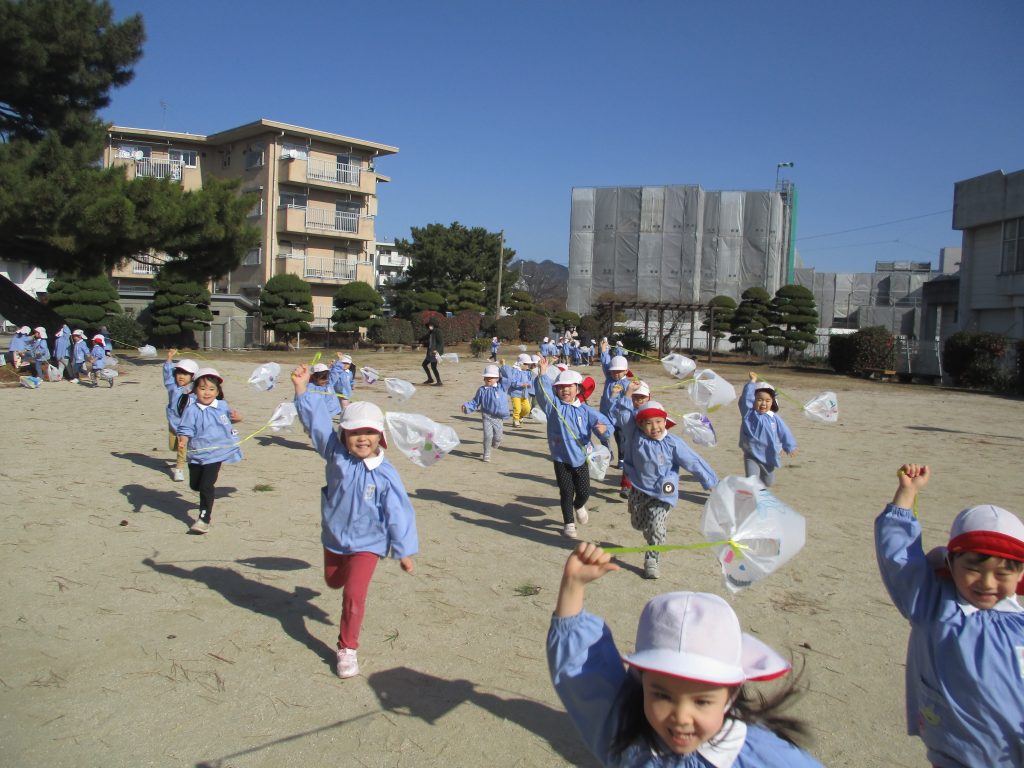 早いのもので3学期に入り、1ケ月が経ちました。友達と一緒にお正月遊びを楽しんだり、戸外では、ケイドロや転がしドッジを楽しんだりしています。ルールのある集団遊びを楽しみながら、友達との関わりも深まってきているように思います。