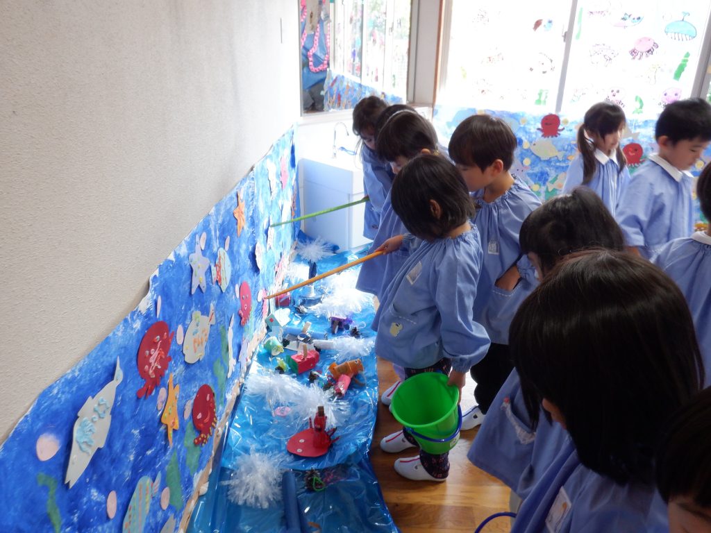 「うみのなかに、おさかながいるよ!」「みて!かめさんもいるよ♪」