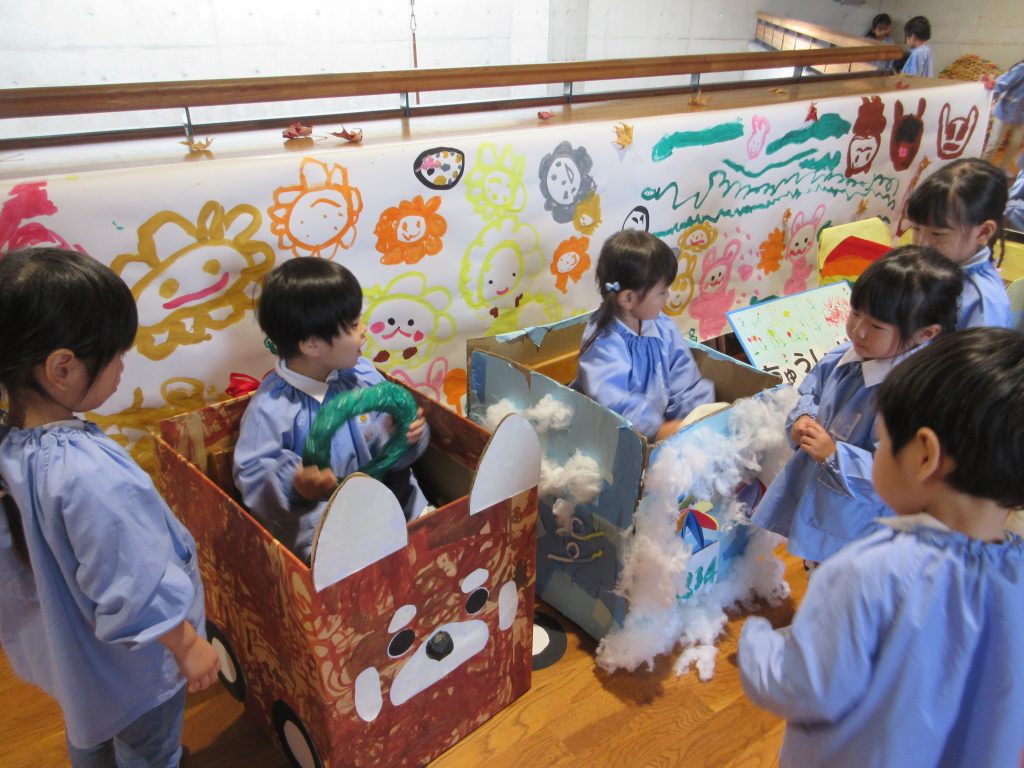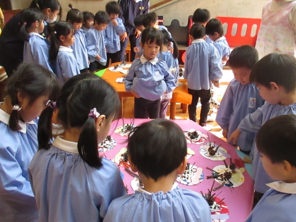 学級閉鎖を経験した年中組では、今週は元気に子どもたちが登園し、作品が完成しました。