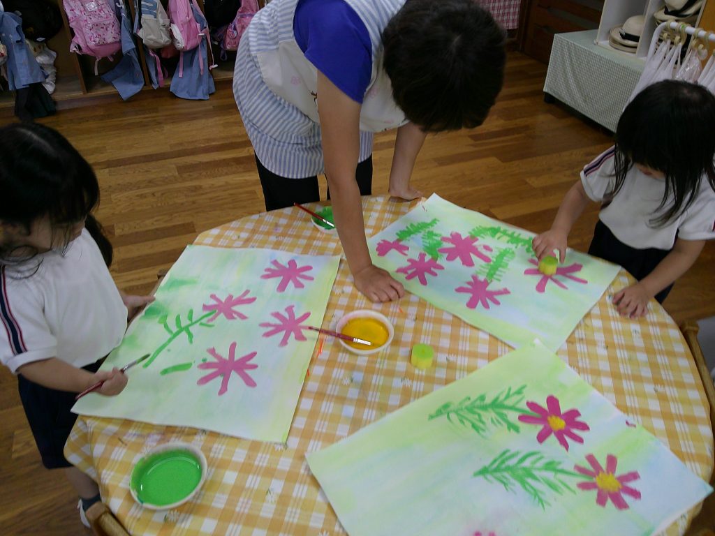 コスモスを絵の具で描いてみました。それぞれ、自分の素敵なコスモスを描くことができました。