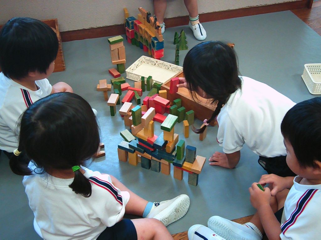 「ここのせる?」「ここがいいんじゃない?」と友達と相談しながら家や船、動物園などを作って楽しんでいました。