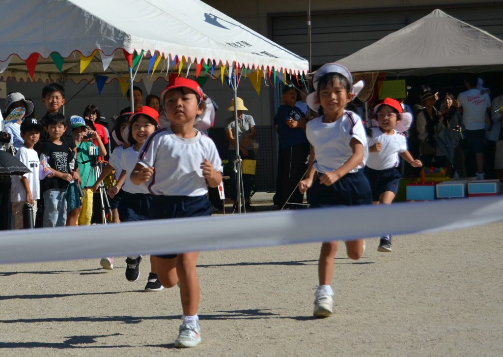 昨年よりも走る距離が長くなり、カーブも上手に走れるようになった年中さん。ゴールまで諦めずに最後まで走りました。
