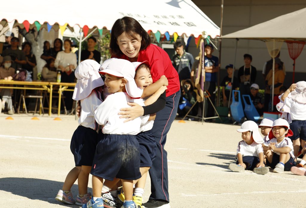 初めての運動会にドキドキのキッズクラスさん。笑顔で先生の胸に飛び込みました!