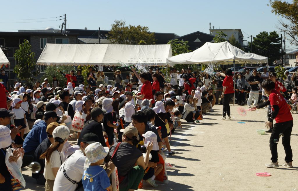 フィナーレにシャボン玉を先生たちが飛ばしました。きれいな秋空にシャボン玉がとても映え、子どもたちは大喜びでした!