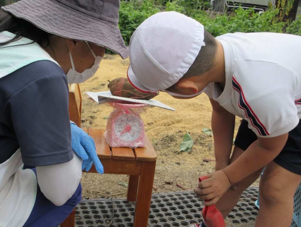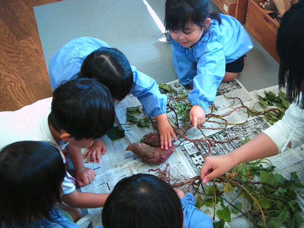 土のついたさつまいもを触ってみたり、じっとよく見たりしていました。