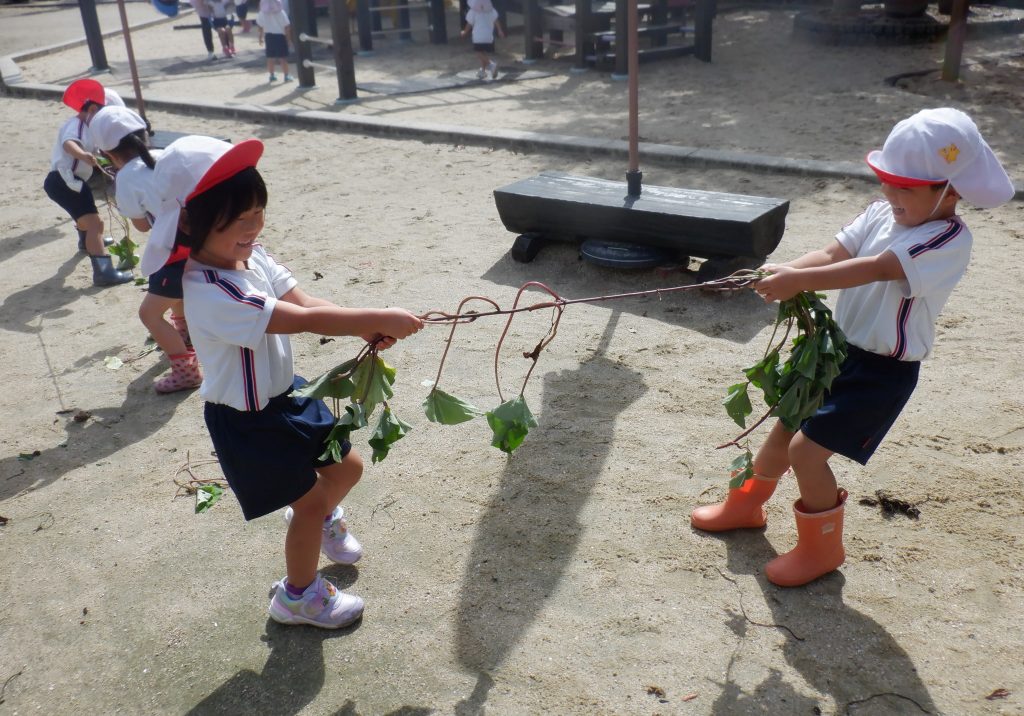 おいものツルを使って、綱引きも楽しみました。