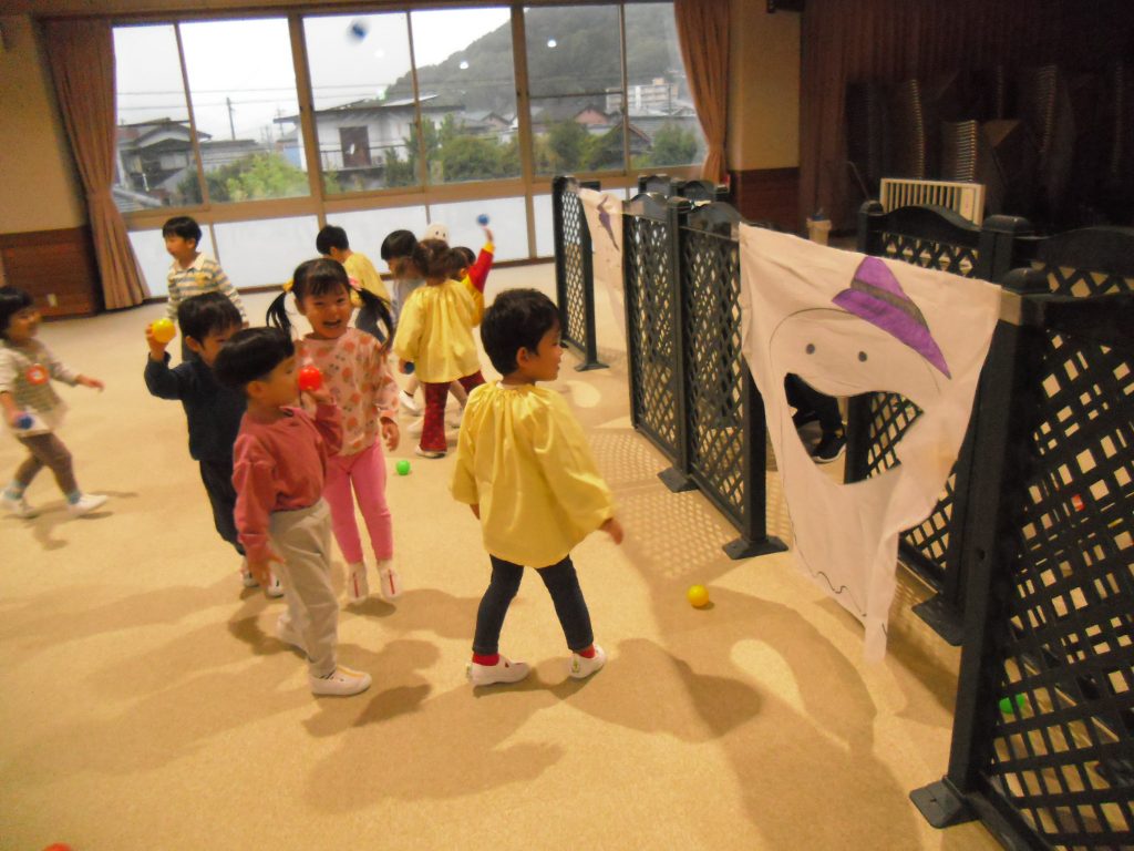 10月31日に、2階のホールでハロウィンごっこを楽しみました。