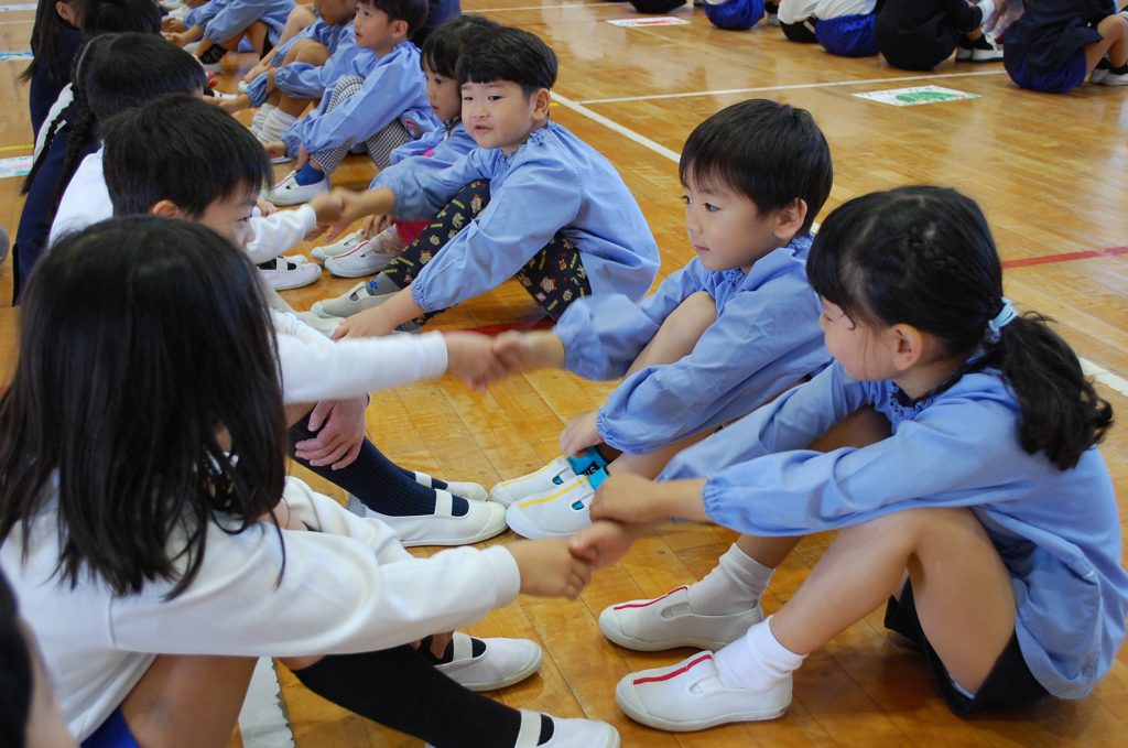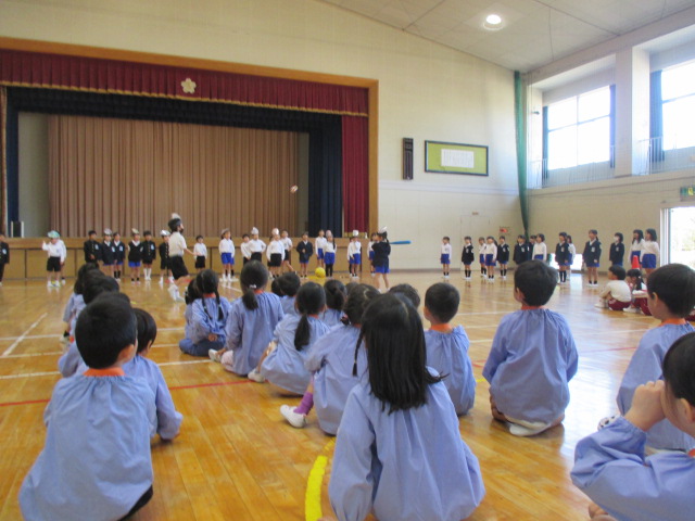 幼稚園のお隣の華浦小学校へ交流会に行きました。小学校へ行くことにドキドキ・ワクワクしている子どもたちでした。