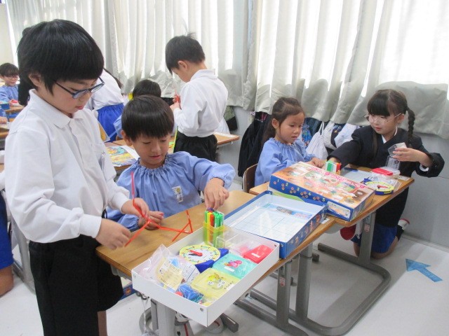 教室では、教科書を見せてもらったり、さんすうセットの中のもので遊ばせてもらったりしました。